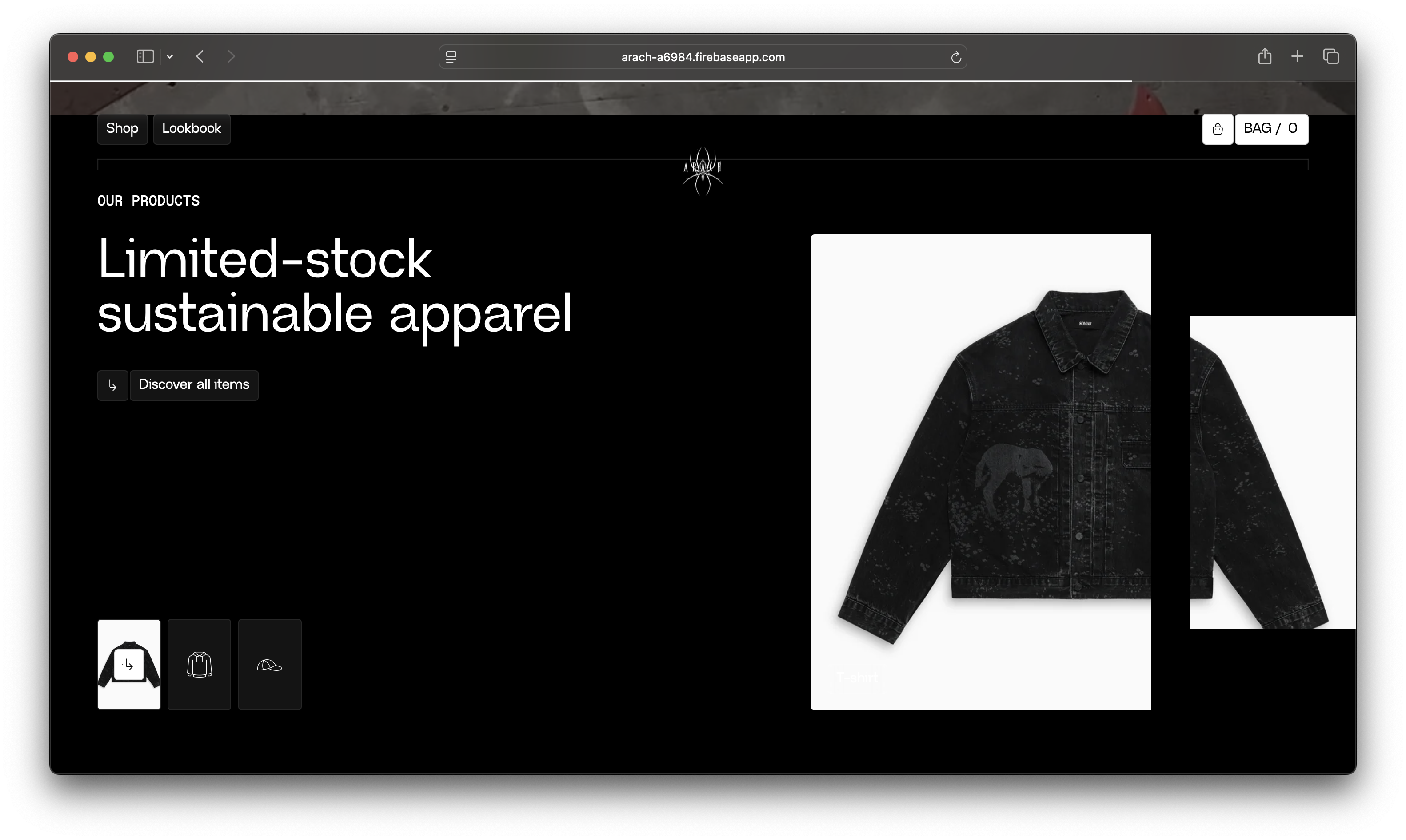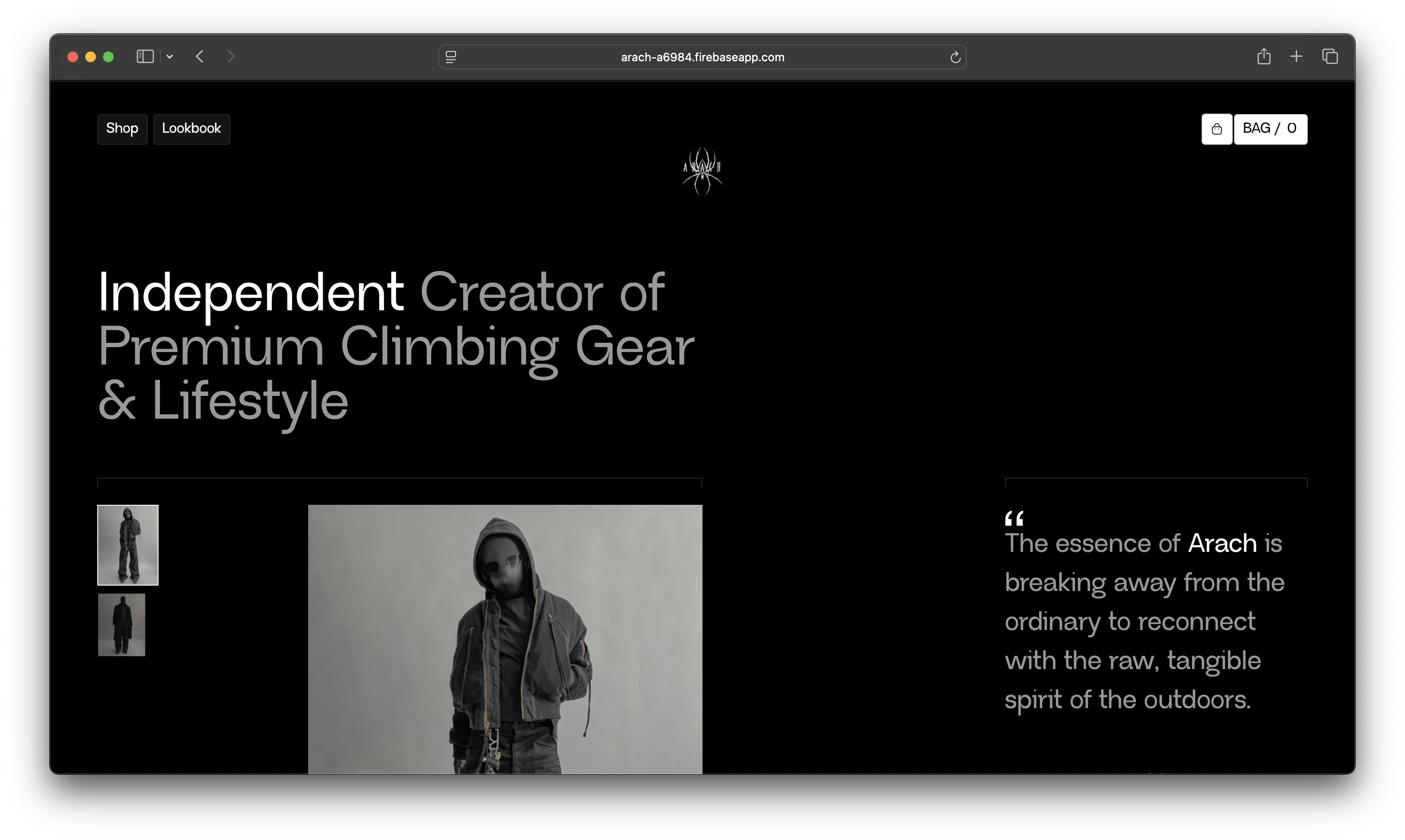 Arach is a highly animated eCommerce website built with Next.js and Shopify. It features a modern layout, smooth animations, and a visually driven shopping experience.